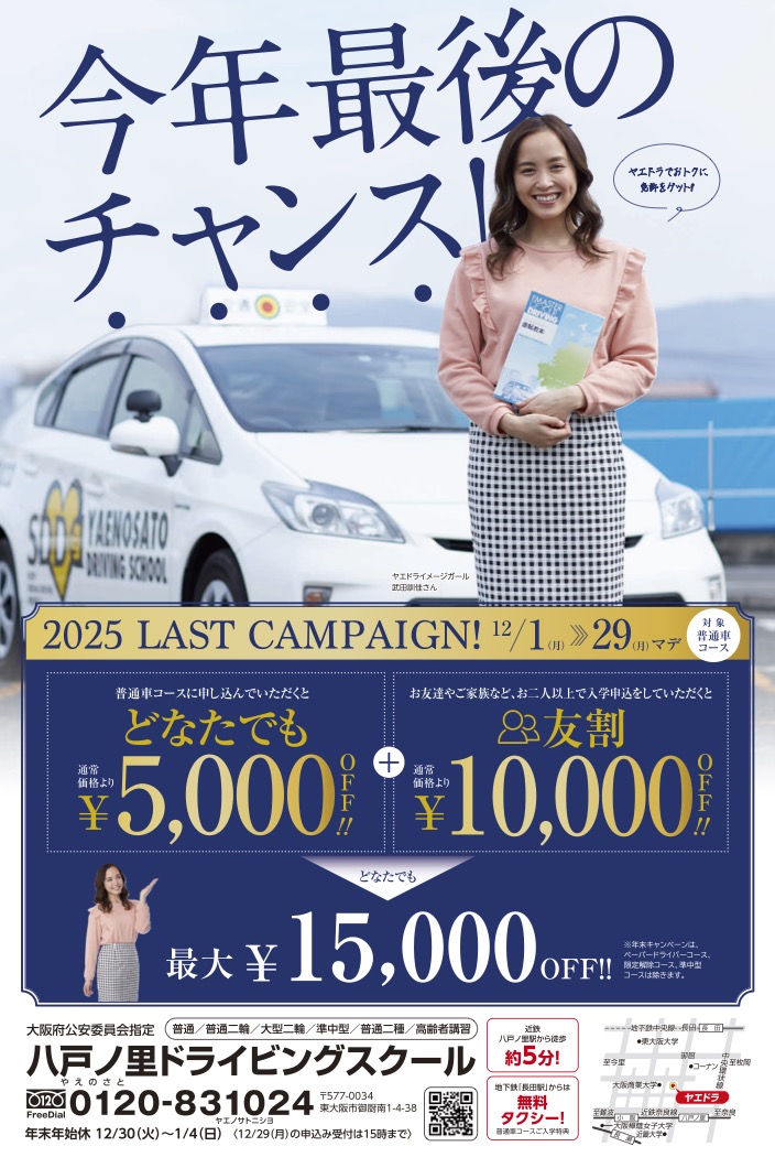 キャンペーン実施中! キャンペーン実施中! Contents キャンペーン ニュース 学科配当表 Latest キャンペーン実施中! 12月の学科配当表をアップ致しました 各種教習、講習の休止のお知らせ 11月の学科配当表をアップ致しました キャンペーン実施中! 過去のトピックス一覧 2025 (5)